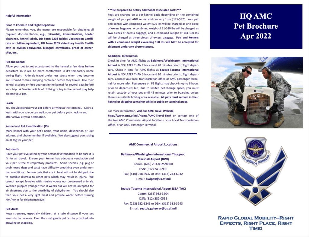 *Check out all the updated Air Mobility Command (AMC) - Patriot Express pet travel requirements here. If this government website doesn't cooperate, copy/paste this link: https://www.amc.af.mil/AMC-Travel-Site/AMC-Pet-Travel-Page/