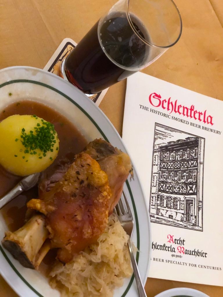 Once you're done exploring the town, take a seat at Schlenkerla for a smoked beer and pork shank. But fair warning: people either love or hate the smoky flavor of rauchbier! If you don't think it'll be your thing, there are plenty of other delicious beers you can have.