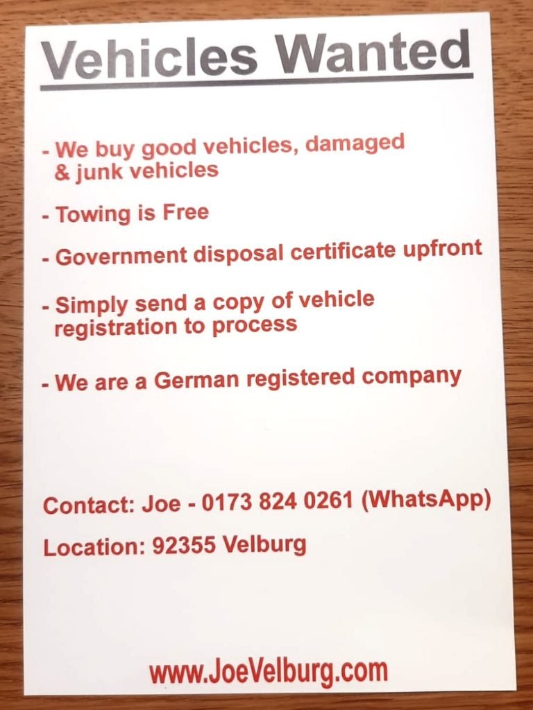 There you have it, a quick guide on how to sell or junk your used car and how to properly dispose of the vehicle when stationed in Germany.