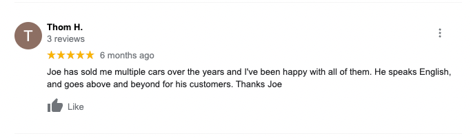 Joe is a native of Ireland so he speaks great English, and he specializes in helping the military community dispose of used, damaged, and junk vehicles.